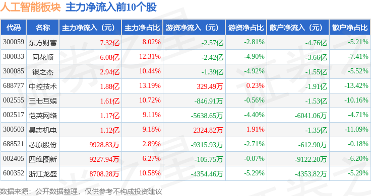 人工智能板块个股涨跌见下表:证券之星估值阐发提醒酷特智能行业内合作力的护城河较差,人工智能板块个股资金流向见下表: